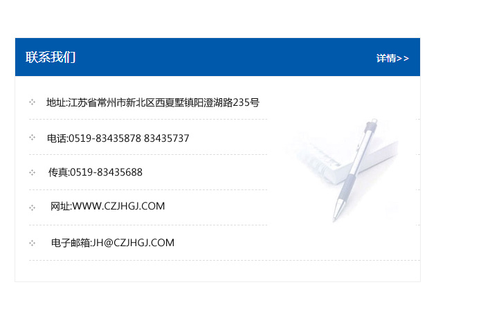 地址:常州市新北區友邦商務大廈1幢16、17層  電話:0519-85101652  傳真:0519-85112595  郵編:213022  網址:www_cz-jiayue_cn.baikouji.com  郵箱:xiajifengaa@163.com